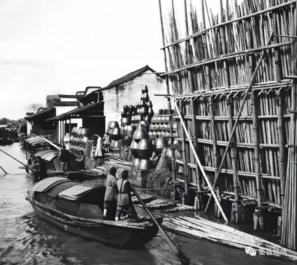 晚清时期浙江一带的运河上小船的罕见旧照,众所周知自古江浙地区以水系为多,当地不得有精美通达的人工运河,亦是有风景秀丽的天然河道,乃是历史上最为典型的水乡风光之地。而江浙一带的经济从古便胜于旁地,或许正是与其水利有关。