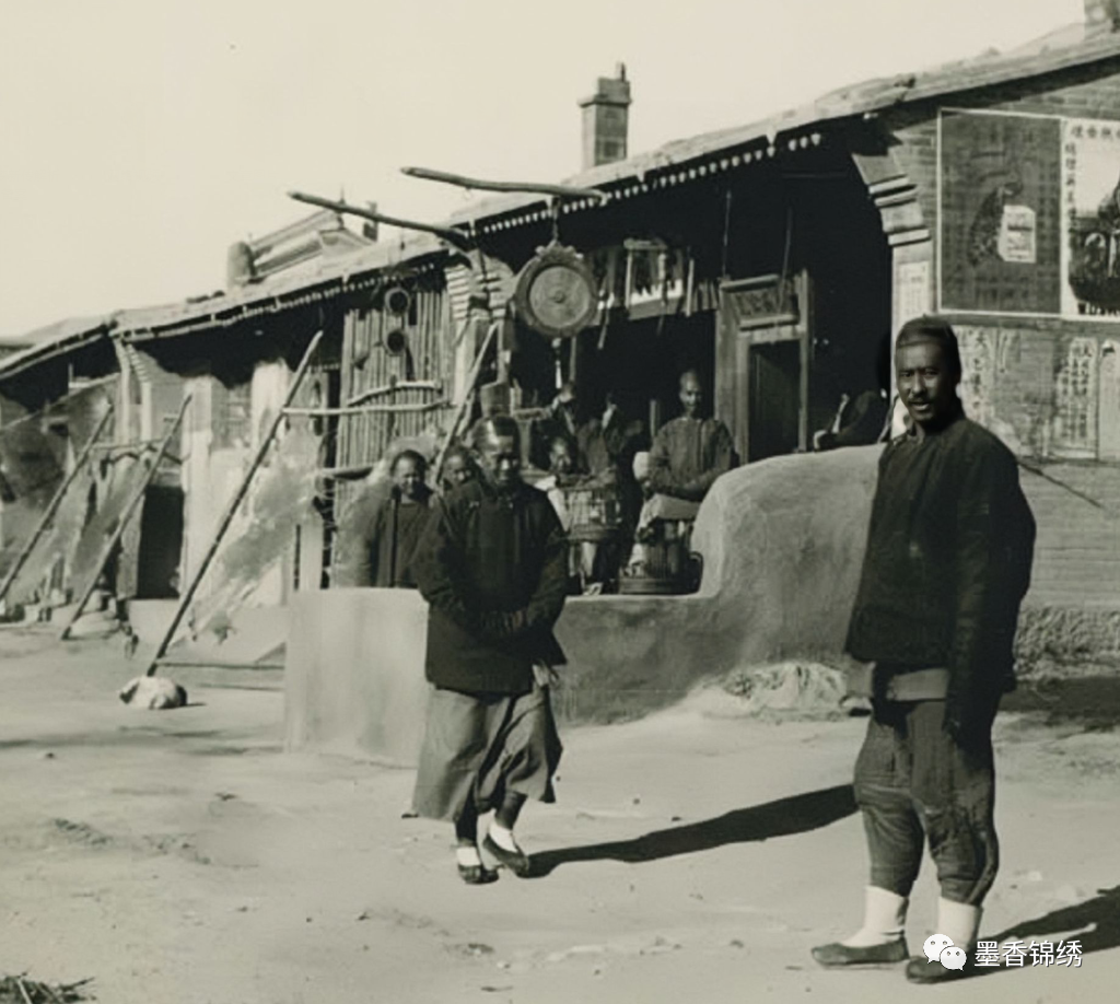 晚清时期河北张家口的商业街留影旧照,老照片中站在商铺前的男子乃是家境富裕的闲人。他们依靠祖上蒙阴和家中遗产,平时无需工作劳碌,一生皆过着衣食无忧的消遣生活。即便后来的晚清到了衰败之时,他们仍旧一副纨绔子弟的做派,不肯为家中生计出来做半分贡献。