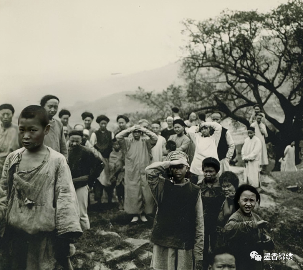 晚清1909年3月,摄影师张柏林带着同伴为当地乡村百姓拍照留影。张柏林当时原本到中国进行地址探察,后来却对各地百姓的人土风情产生了浓厚的兴趣,于是一路上用照相机拍摄了很多村庄百姓生活旧照。而面对金发碧眼的西方洋人,蜗居山谷的乡村百姓更是诧异不已,于是皆都用好奇而担心的眼神看着他们。