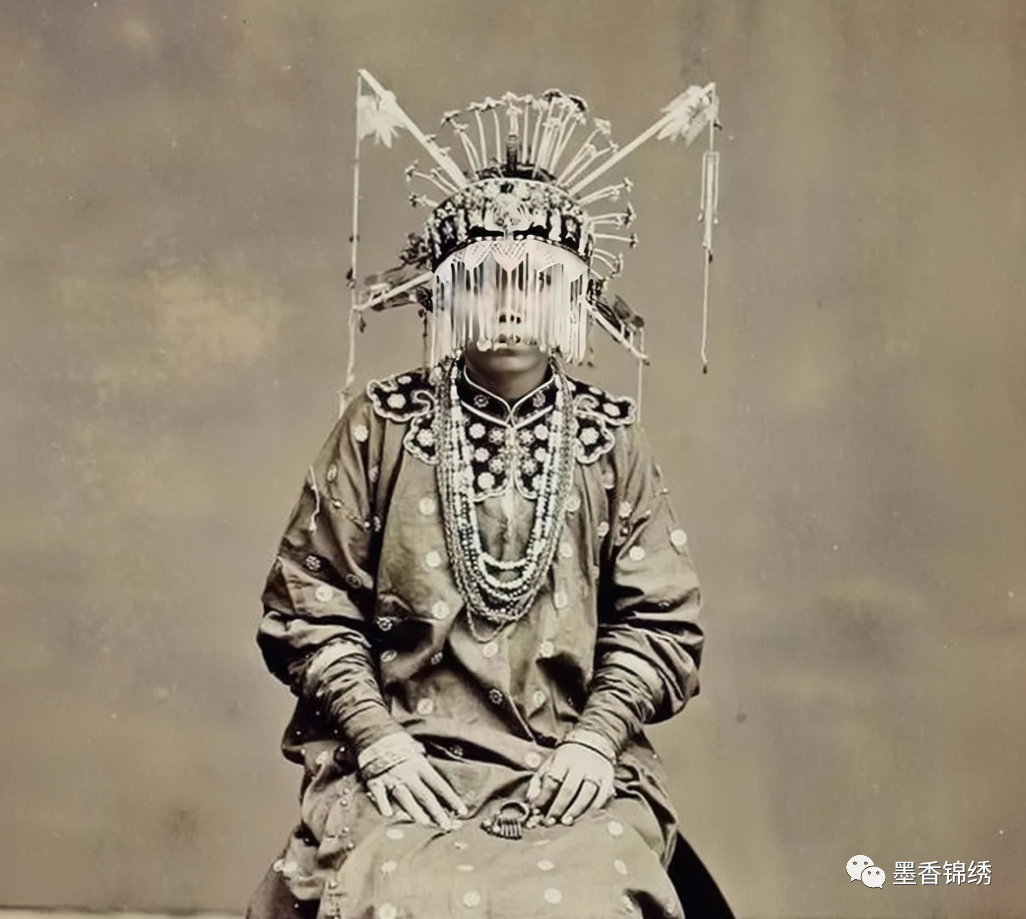 晚清年间一位盛装出嫁的新娘美丽惊艳的旧照留影,世人皆知婚嫁迎亲乃是人生最为重视之事。因此凡是被明媒正娶的女子,通常会在出嫁当天穿金戴银衣着锦绣地盛装出嫁,以自己最美的妆容时刻去面见未来的夫君与婆家之人。