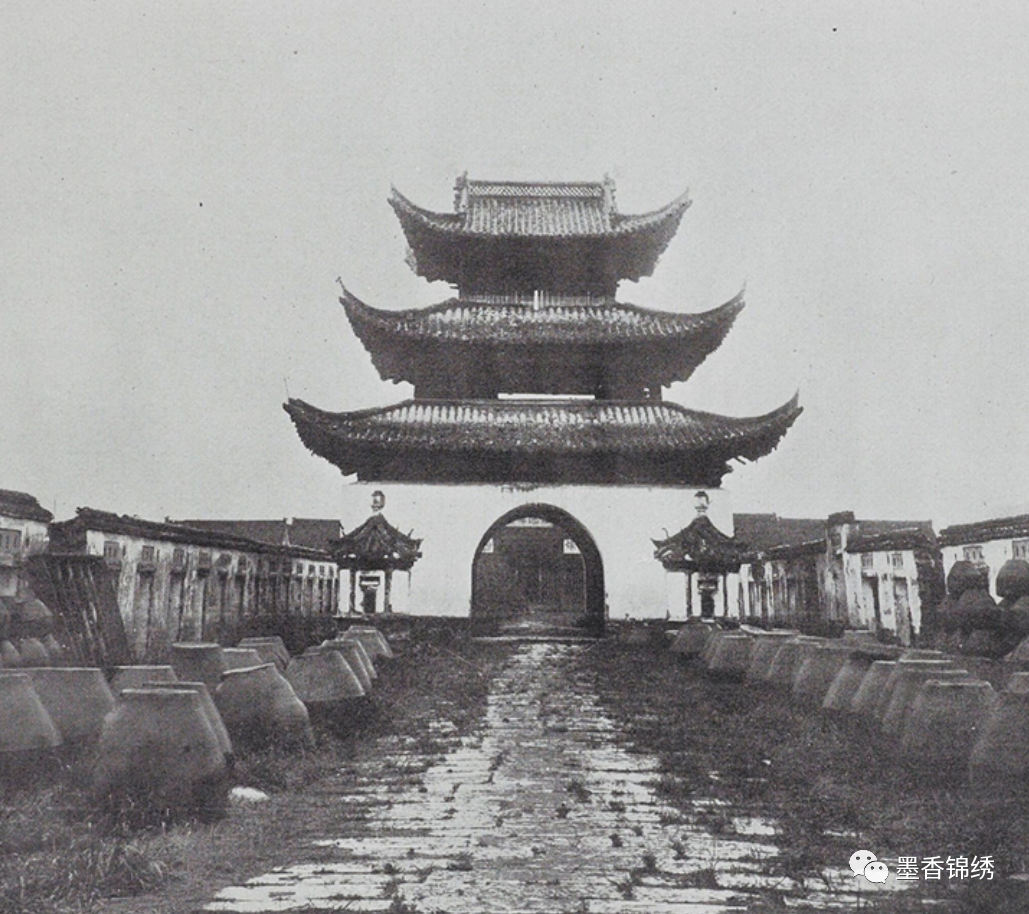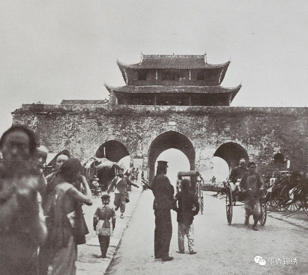晚清年间南京一带的鼓楼留影旧照,众所周知这座南京鼓楼的城阙乃是明朝时期的遗物古迹,而其城楼则是清朝的康熙皇帝所建。明朝历代皇帝喜爱高屋建瓴,而清朝皇帝则注重精美修葺,因此两者相比起来,清朝的鼓楼规模比明朝小则许多。