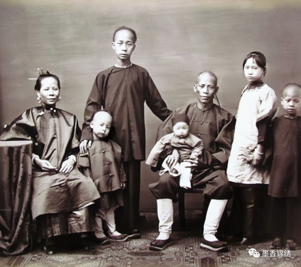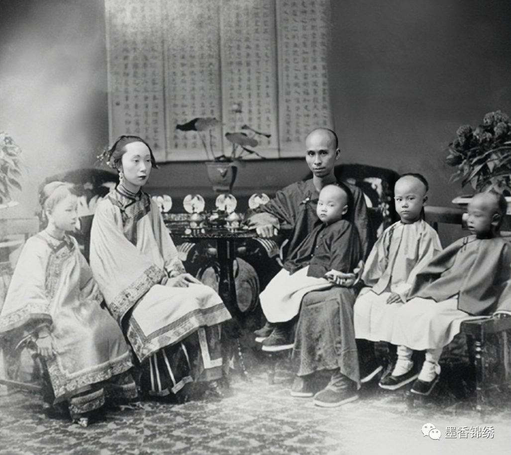 晚清年间的广州商人与妻子及家人们的合影旧照,老照片中的商人虽然衣着华贵锦绣,但是其身边的女眷却唯有原配正室一人,其余皆是自己的子女。古代的有钱男子纳妾乃是常见之事,而这些商人却一生独爱原配一人,可见他与原配妻子的感情有多深厚和睦。