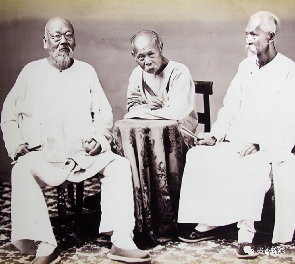 晚清年间的三位百岁耄耋老人合影旧照,老照片中的百岁老人精神抖擞,皆都穿白衣为去世的咸丰皇帝守孝服丧。彼时正是晚清1861年的8月之际,当时咸丰皇帝在承德避暑山庄离世殡天。为以示天下臣民对咸丰皇帝去世的痛苦与哀悼,清廷令朝中文武百官和黎民百姓为其着白衣守丧,于百日之内不许作乐,一月之内不得喜庆嫁娶。