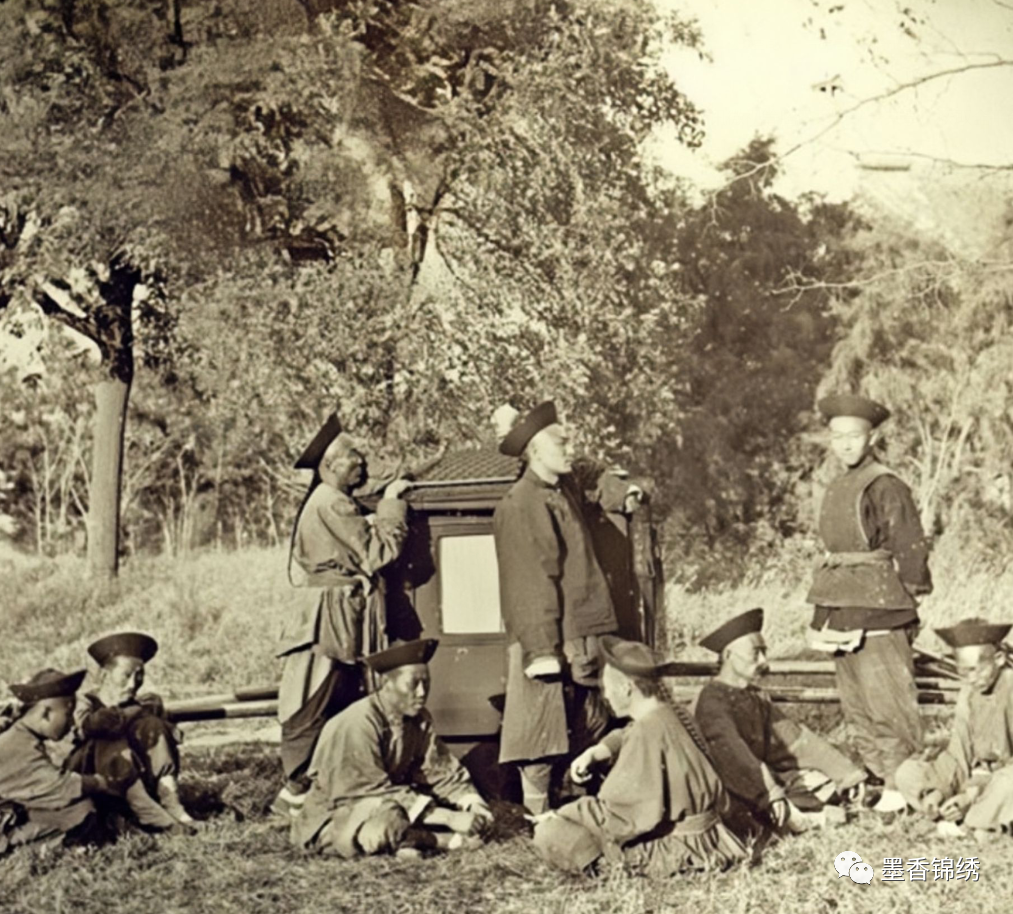 晚清年间老北京城里的轿夫与轿子的合影旧照,老照片的轿子旁一共有九人。其中八人是轿夫,剩一人则是喊轿喝道之人。古时候素有八抬大轿之称,而自寓意正是来此也。其实据清朝律例所定,当时只有郡王、亲王等级别的王公贵族方可乘坐八抬大轿,而朝中的一品文武大臣则是乘坐四人轿子。
