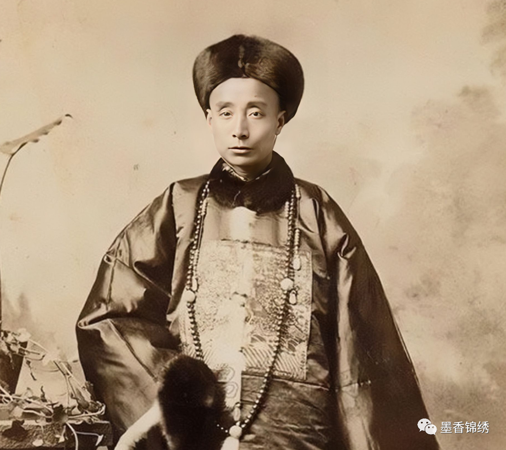 任职晚清朝廷五品文官的戈鲲化的肖像旧照,老照片中的戈鲲化相貌清俊帅气,所穿着的朝廷补服亦是华美精致,乃是晚清年间朝廷大臣的典型形象代表。戈鲲化虽然于清廷官职较低,但是曾于晚清1879年被聘任为哈佛大学的教师,为校内学生讲授国内文化与汉语。戈鲲化一生经历可谓是非同凡响,甚至还编写了一本名为《华质英文》的著作,为传播中国文化及语言做出了具有重大意义的贡献。
