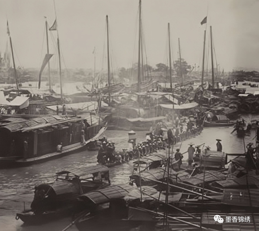 晚清1887年广州花地河上的行船旧照,华地的位置在广州的城西南,自古便有着花园楼台数十,栽花木为业的花卉专业之区的美称。此地百花齐放娉婷数十里,可谓是香浓百亩有花田的壮丽唯美之景。与晚清光绪皇帝治下时期,此处专门种植的盆花的花园之地已有十几处。