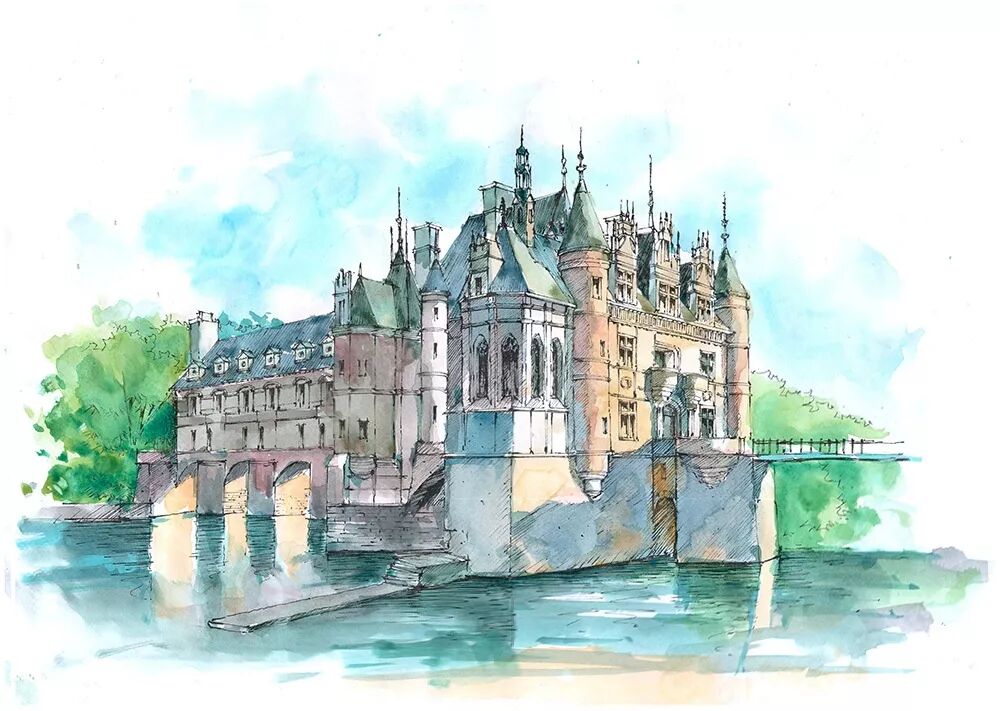 城堡在一座孤岛里面,制高点的塔楼最为险峻。整座城堡傍山而建,每座堡垒都挂着一模一样的旗帜,夜莺。