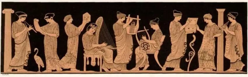 希腊神话中,缪斯有九个,都是宙斯的女儿(也有缪斯是三女神不是九的说法,九比较流行)。她们掌管音乐、歌舞,是一群艺术女神。常常在众神聚会上轻歌曼舞,为大家送去愉悦。