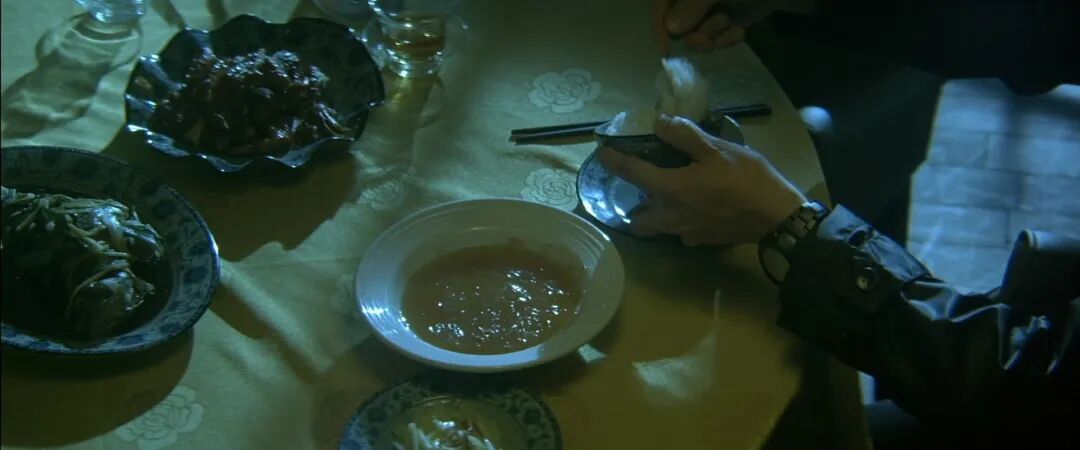 饭馆吃面,借鉴了杜琪峰电影《神探》的思路,为了还原罪犯的状态,王千源他们也按照匪徒点的菜,吃饭。