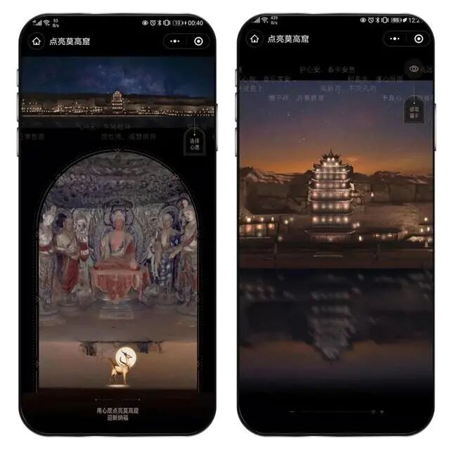 利用移动数字技术和区块链技术,首次在线上重新呈现一千年前莫高窟的点灯夜景,在网络空间复原了莫高窟燃灯民俗。
