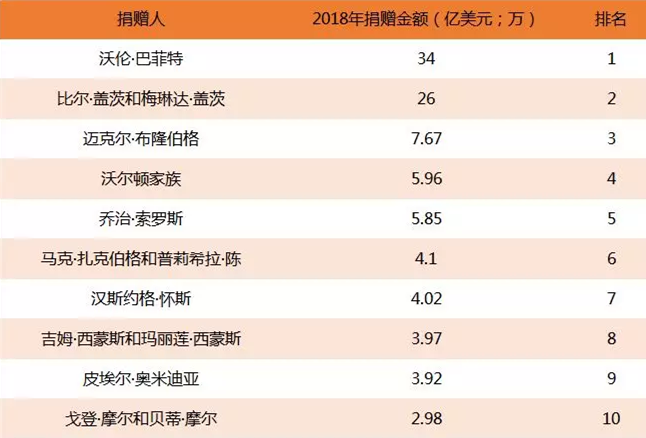 比如一年能捐34亿美元的巴菲特、捐26亿的比尔盖茨…