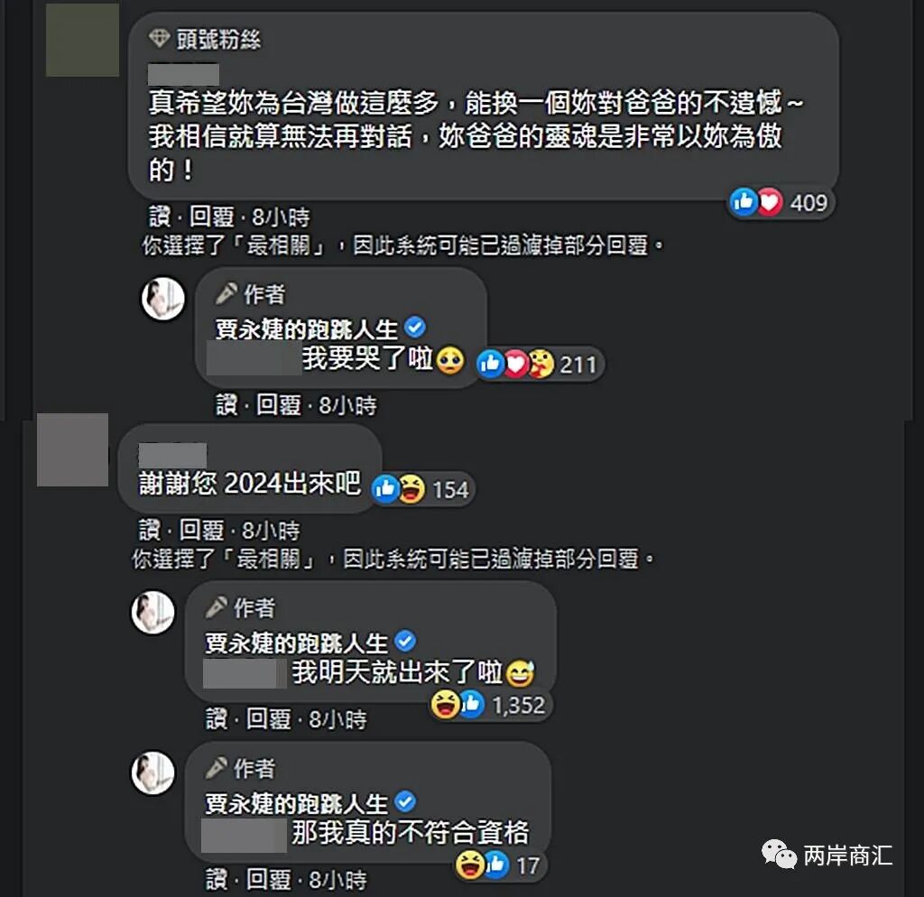 贾永婕回应:「我要哭了啦」,另有人说:「谢谢您,2024出来吧」,她则逗趣回:「我明天就出来了啦」。