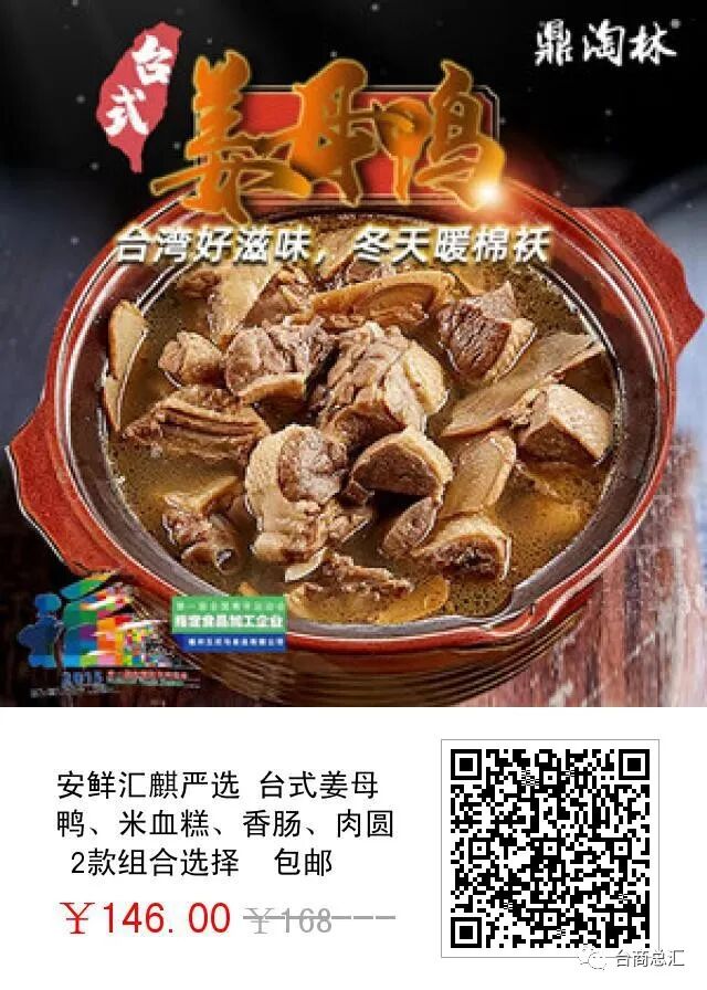 1、二合一组合:台式薑母鸭1000g盒x2盒(净重2000克)+米血糕500克/包,146元/组。