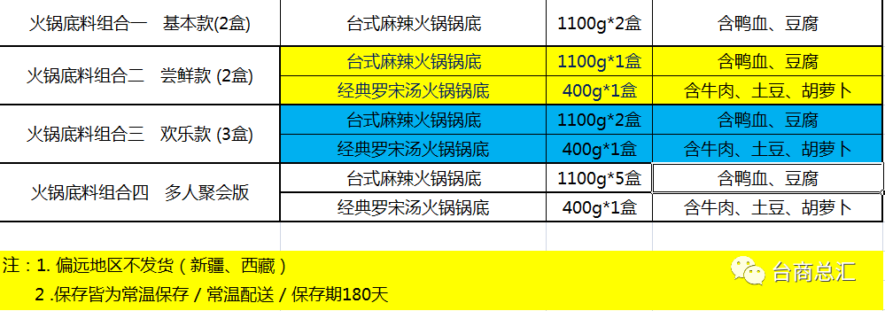 ①、羊肉炉一盒(可兑水800cc煮)。②、综合组:羊肉炉一盒+火锅料=1组,(火锅料1袋450g/有:黑轮/米血/芋头贡丸/花枝丸/原味贡丸/鱼豆腐/)。