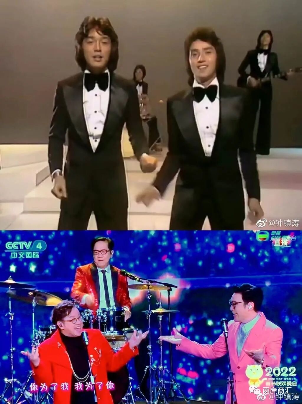 (5日)他更在微博分享与谭咏麟年轻时与现在的比对图,感慨写下:“转眼数十年”。