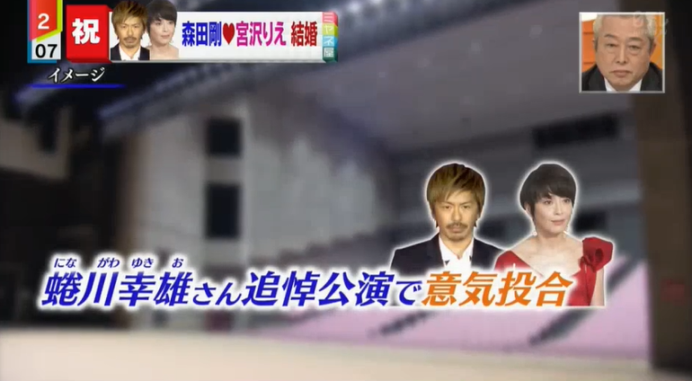森田刚2016年因演出大师蜷川幸雄舞台剧,从而结识宫泽理惠并进而相恋,