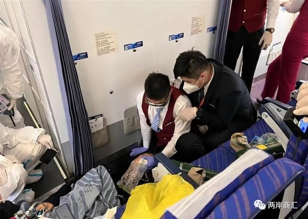 在医生建议下,蒋菲菲立即将情况报告机长,机长决定返航,并提前联系机场救护。