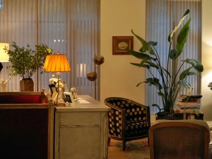 有点像世外桃源——一路穿过茂盛的树木,拨开繁茂的枝叶,踏过长满了鲜花的小道,才会走进这座充满了复古气息的房子。