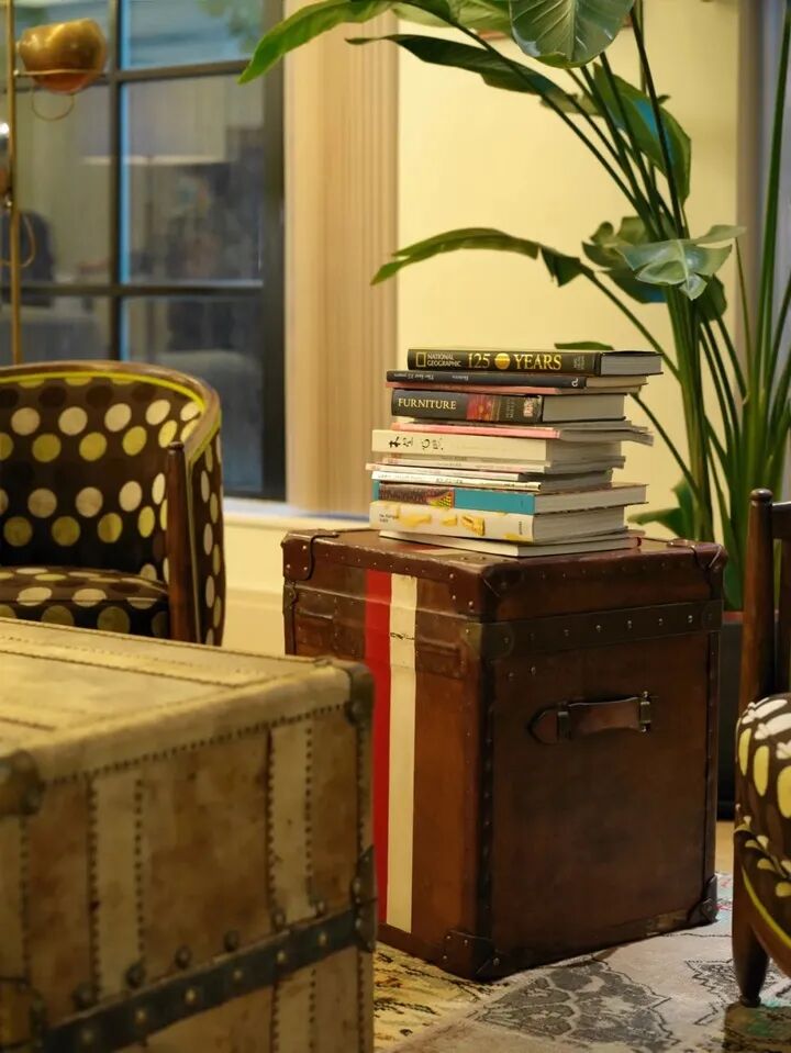 整个房间里都没有茶几和床头柜,全部用老旧的旧皮箱来替代。