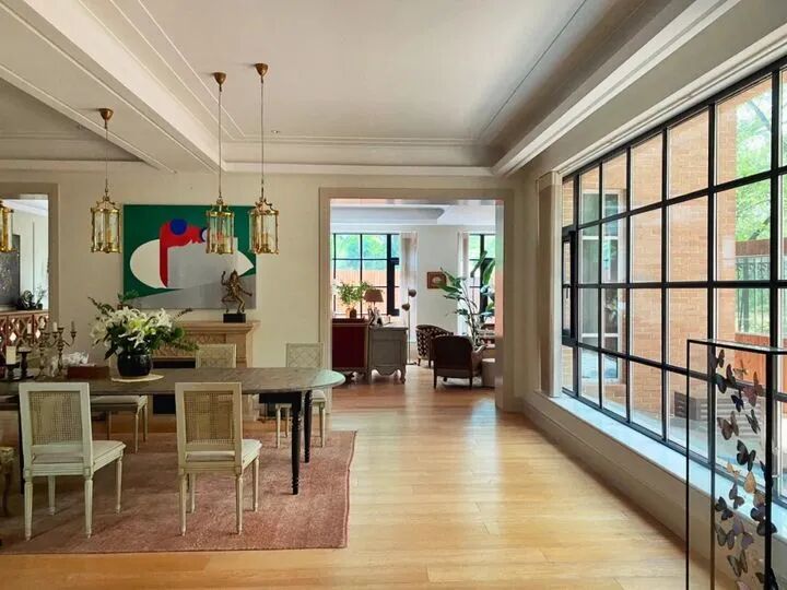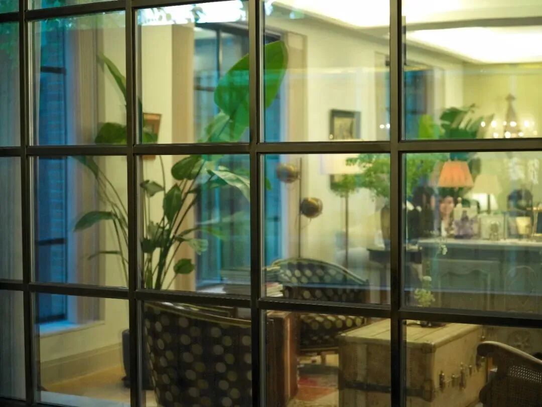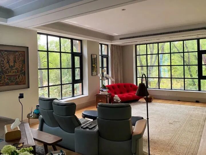 几乎所有的窗户都是落地窗的设计,法式的黑格窗,优雅又耐看。