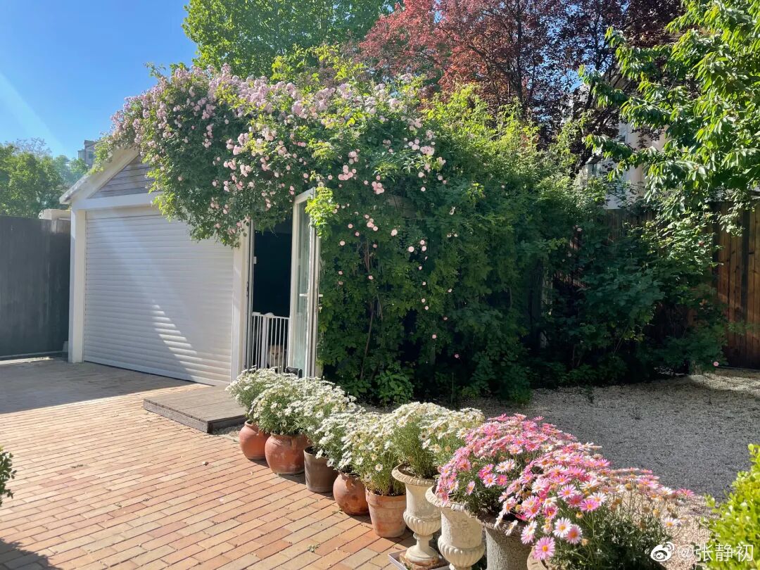为了纪念小时候的生活,她把院子做成自己记忆里童年的样子,有树、有花、有狗,如同乡下。