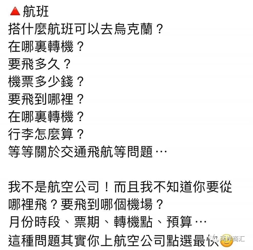 关于台湾往返乌克兰的交通,她不是航空公司,也不知道对方要从哪裡出发、在哪个机场降落,更不知道出发日期与预算,