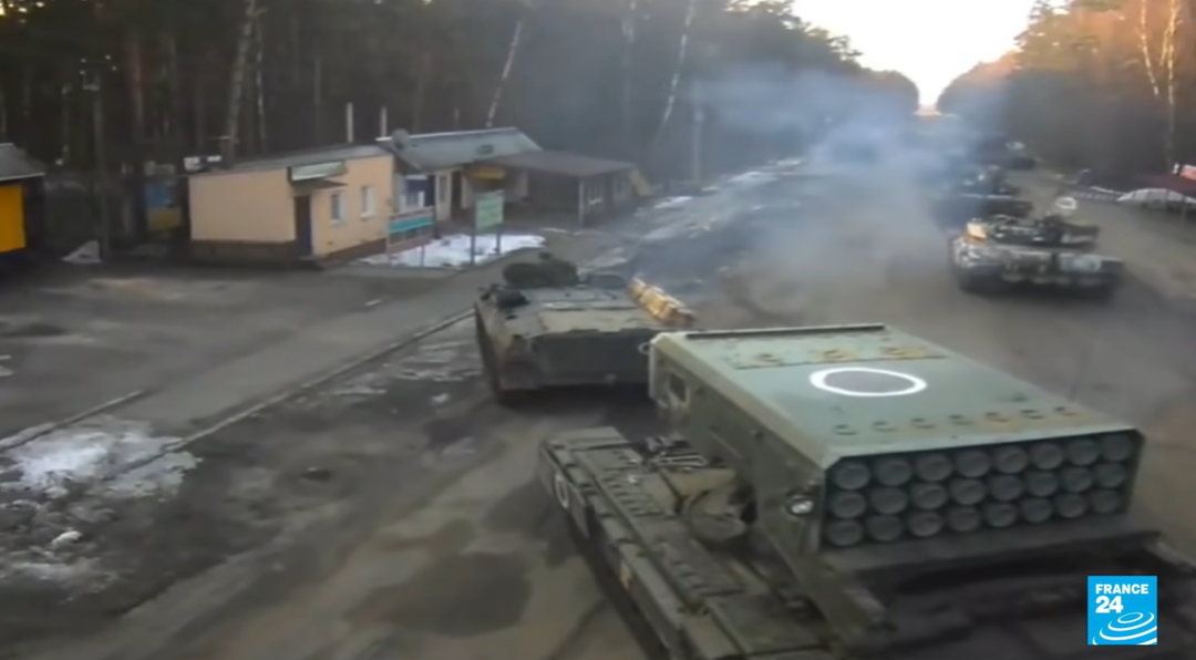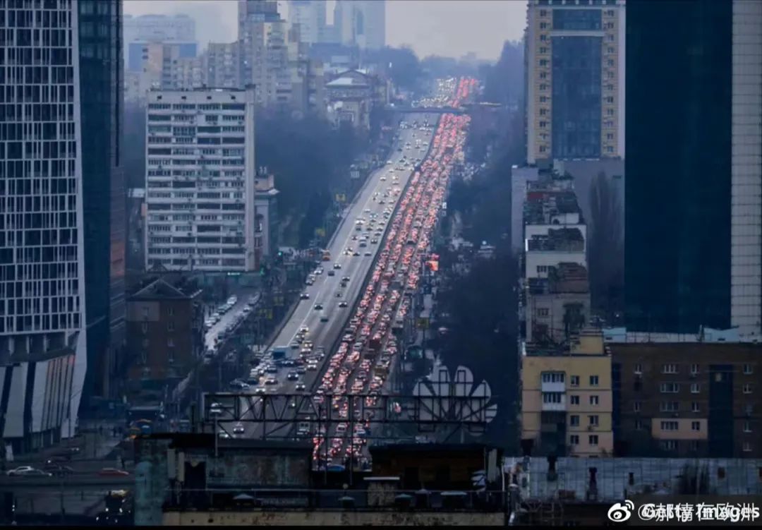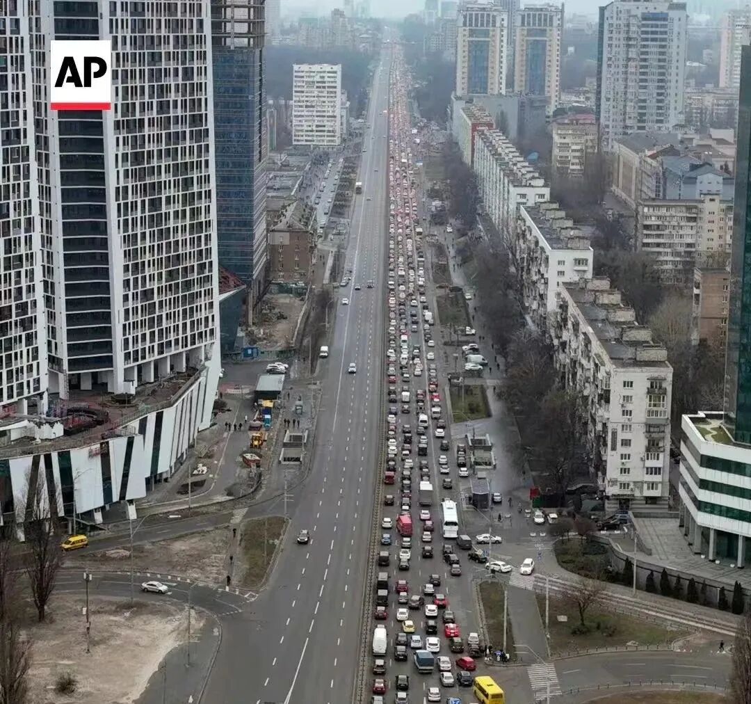逃离基辅的车辆拥堵在马路山,战争中,人不过蝼蚁。