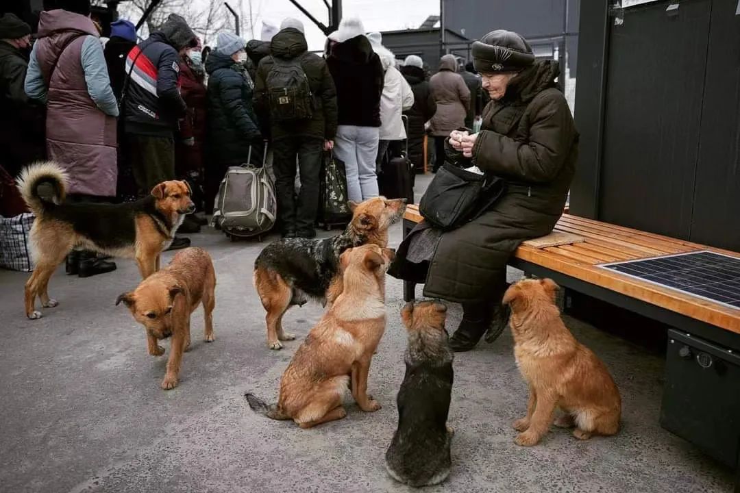 旁边是前往避难所的长队,她不清楚她的宠物能否允许进入。