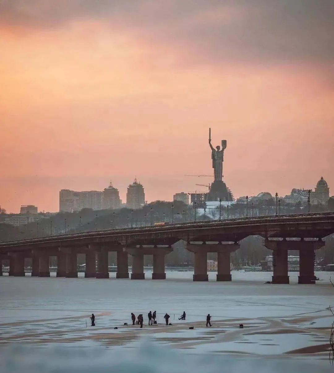 曾经的乌克兰首都基辅,冬日与晚霞,街头巷尾透着北方独有的宁静。