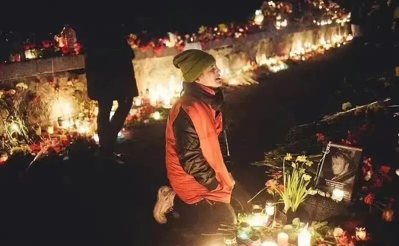 乌克兰街头,已经开始有人为死去的家人悼念。
