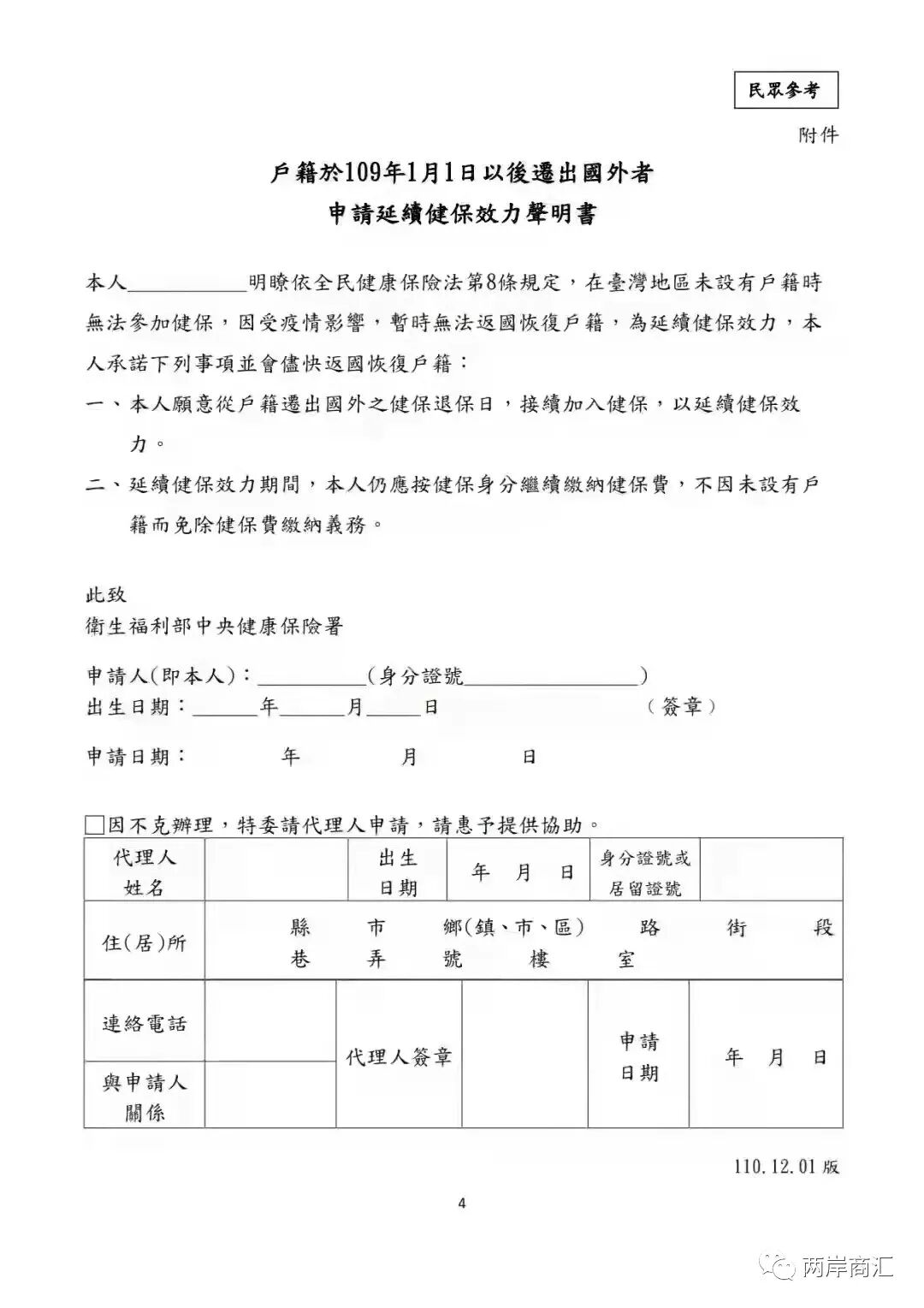 以下是申请书!大家可请家人到当地健保局提出申请并了解最新制度及付费情况..