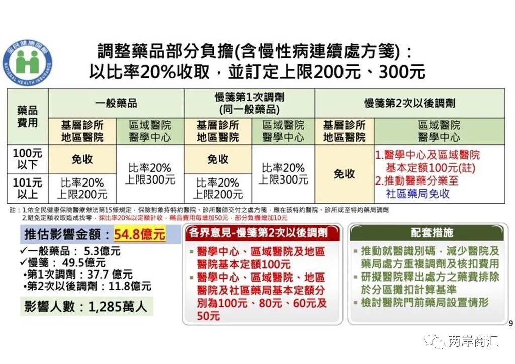 根据健保署提出的部分负担方案,区域医院、医学中心一般药品部分负担上限将调高至300元,其余维持200元。