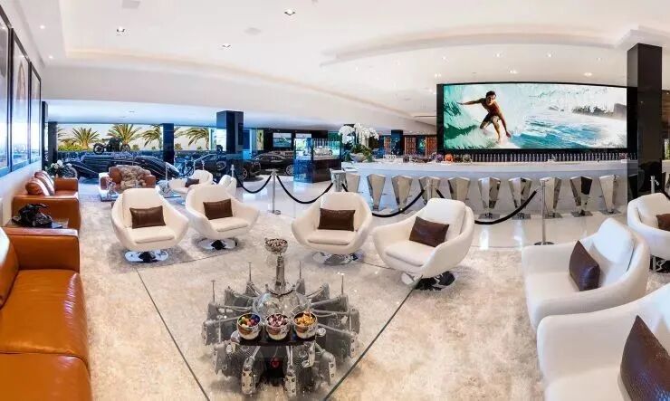 坐在沙发上看着名画、欣赏着豪车真是惬意无比