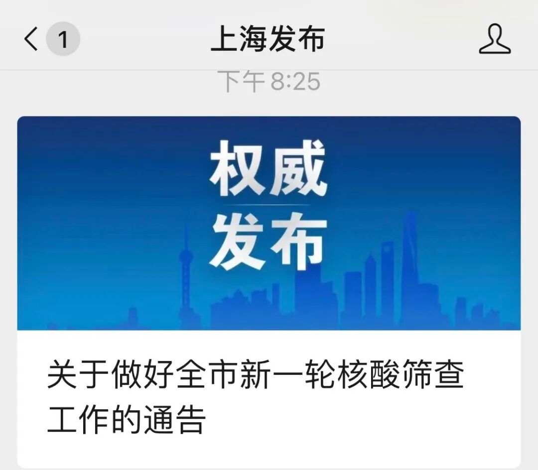 上海发布做好全市新一轮核酸筛查工作的通告: