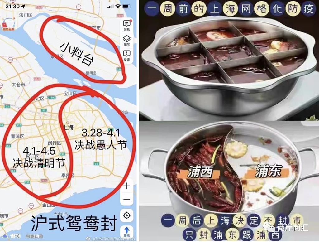 上海市从本周一(3月28日)开始实施“鸳鸯锅式”封控,