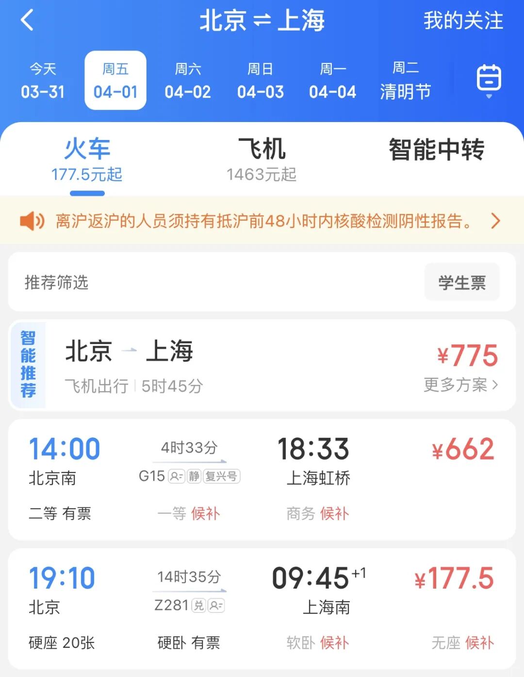铁路出行方面,京沪高铁每日仅保留两趟班次。