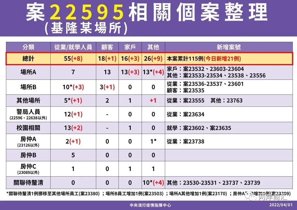 基隆小吃店群聚今增21例,累计115例,包括有几条线昨天还不清楚的,都归在基隆小吃店衍伸。