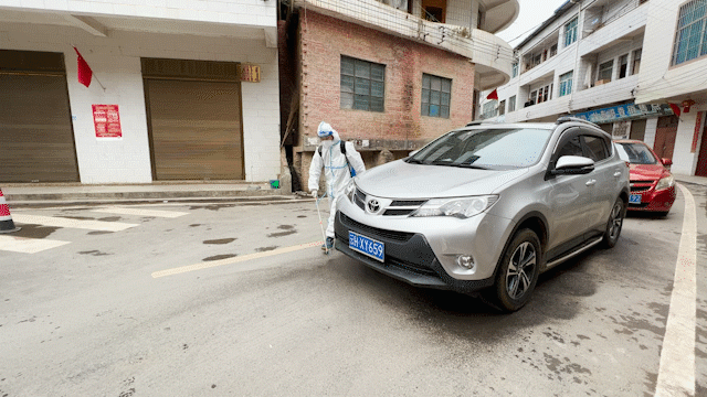 奔走在各个疫情防控点进行消杀