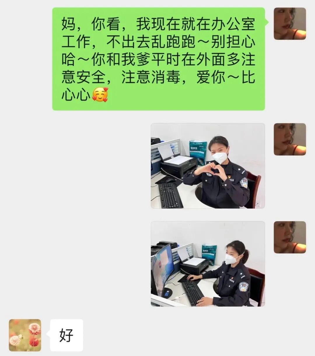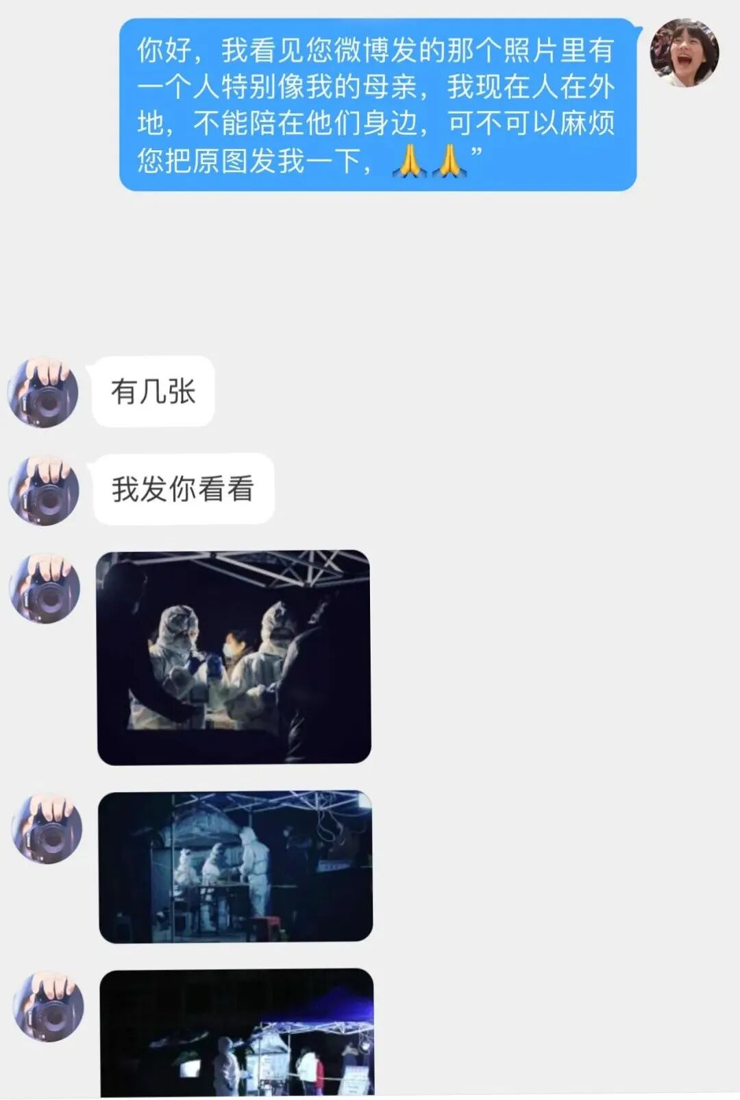 看到了母亲穿着防护服