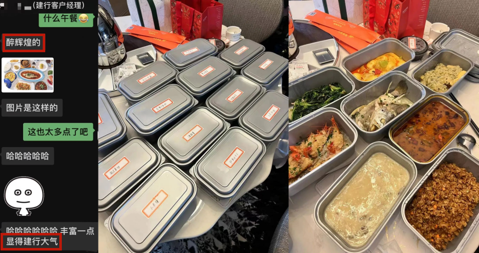 建行银行经理变成了私人管家,给各位大客户定了酒店高档午餐。
