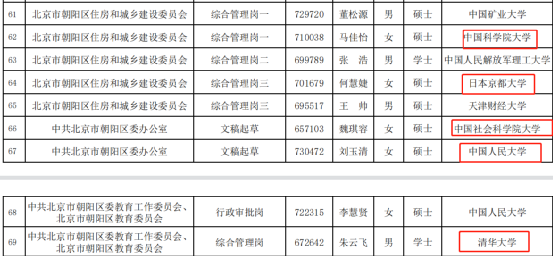 近日,北京市朝阳区公布了2022年公考拟录用人员名单,从这些拟录人员毕业院校来看,