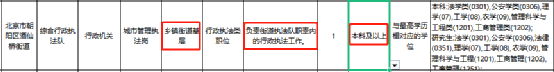比如朝外街道的城管队员工作内容是“负责城管职责内的行政执法工作”,学历要求是“本科及以上”,专业要求则给得比较宽。