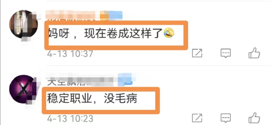 有的表示“妈呀,现在卷成这样了”,有的认为“稳定职业,没毛病”。