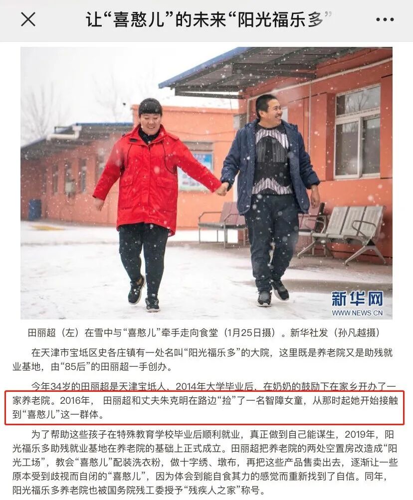 新华网曾报道过一个天津85后,因为收养了一名被遗弃的智障女童开始接触这个群体。