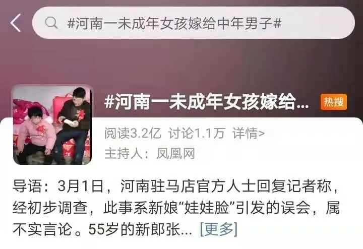 视频在网上引起热议,话题#河南一未成年女孩嫁给中年男子#的话题也冲上了热搜。