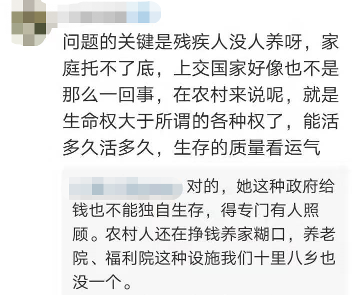 没有政府福利兜底,缺少农村残疾人保障措施,更没有城里人常见的福利院和社区服务,农村的残疾人,父母老去、丧失劳动能力后,能去哪?谁来照顾?