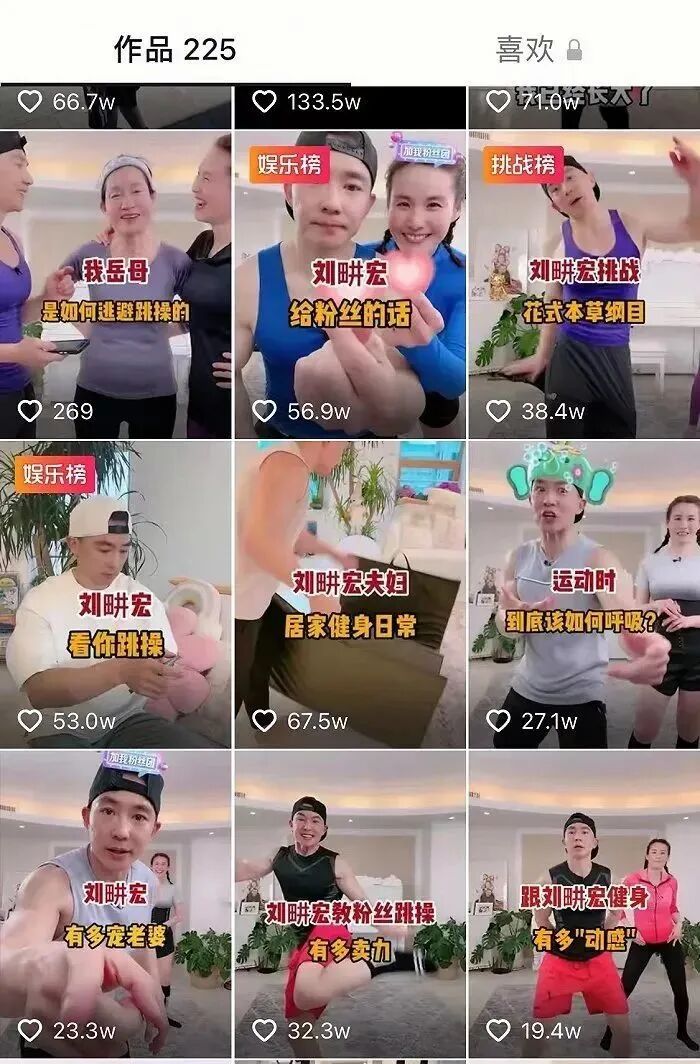 与其他健身博主不同,刘耕宏直播时会带上妻子一起训练,甚至还会拖上岳母。