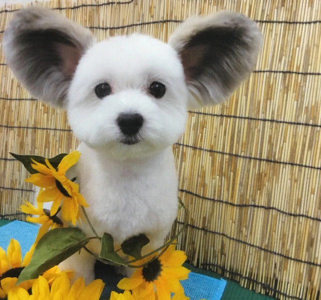 虽说耳朵是尖的,但毛孩子的毛发很长,铲屎官则把耳朵修剪成圆形的。