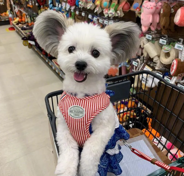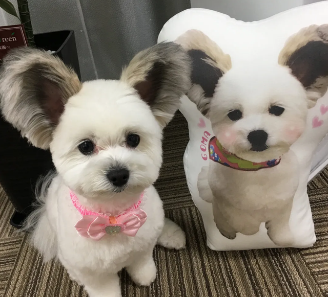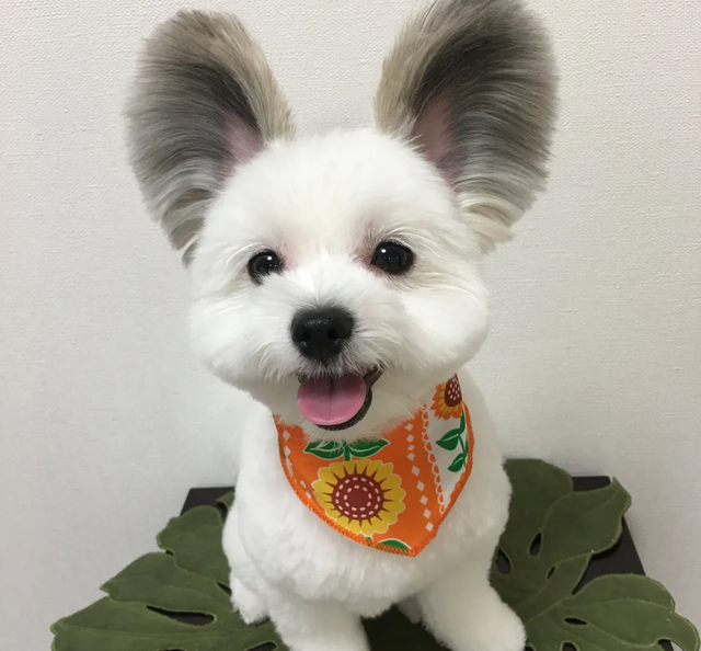 耳朵都比狗狗的脸还大,经过检查后发现这家伙是马尔济斯跟蝴蝶犬的后代,