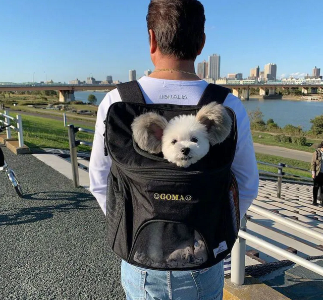 铲屎官有空就会带狗狗出去遛弯,还会带Goma去超市购物,